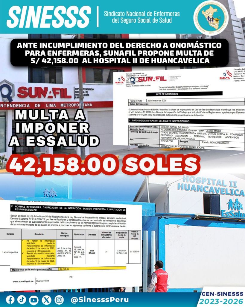 La firma legal Mascaró-Consiglieri-Abogados ha reafirmado su compromiso con la defensa de los derechos laborales de los profesionales de enfermería en el sector salud. En un nuevo proceso inspectivo impulsado por dicha firma, se ha logrado evidenciar el incumplimiento de las disposiciones legales por parte del Hospital II de Huancavelica, perteneciente a EsSalud, respecto al derecho al onomástico para enfermeras.