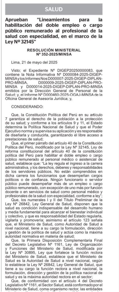 El beneficio alcanza tanto a personal del MINSA y ESSALUD.