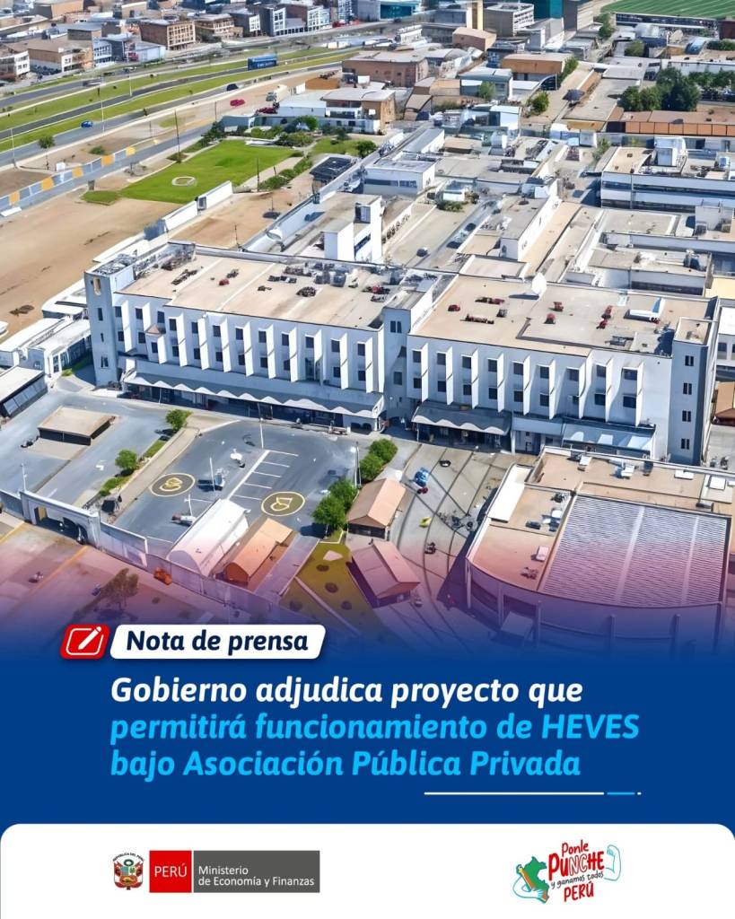 El Ministerio de Economía y Finanzas (MEF), a través de PROINVERSIÓN, por encargo del Ministerio de Salud (MINSA), adjudicó hoy la buena pro del proyecto «Operación y Mantenimiento del Nuevo Hospital de Emergencias Villa El Salvador – HEVES», una Asociación Público-Privada (APP) cofinanciada por el Estado peruano, que beneficiará a casi 1 millón de habitantes de Lima Sur (Villa El Salvador, Lurín, Pachacamac, Pucusana y cinco balnearios) con un hospital funcional, seguro y con servicios ininterrumpidos.