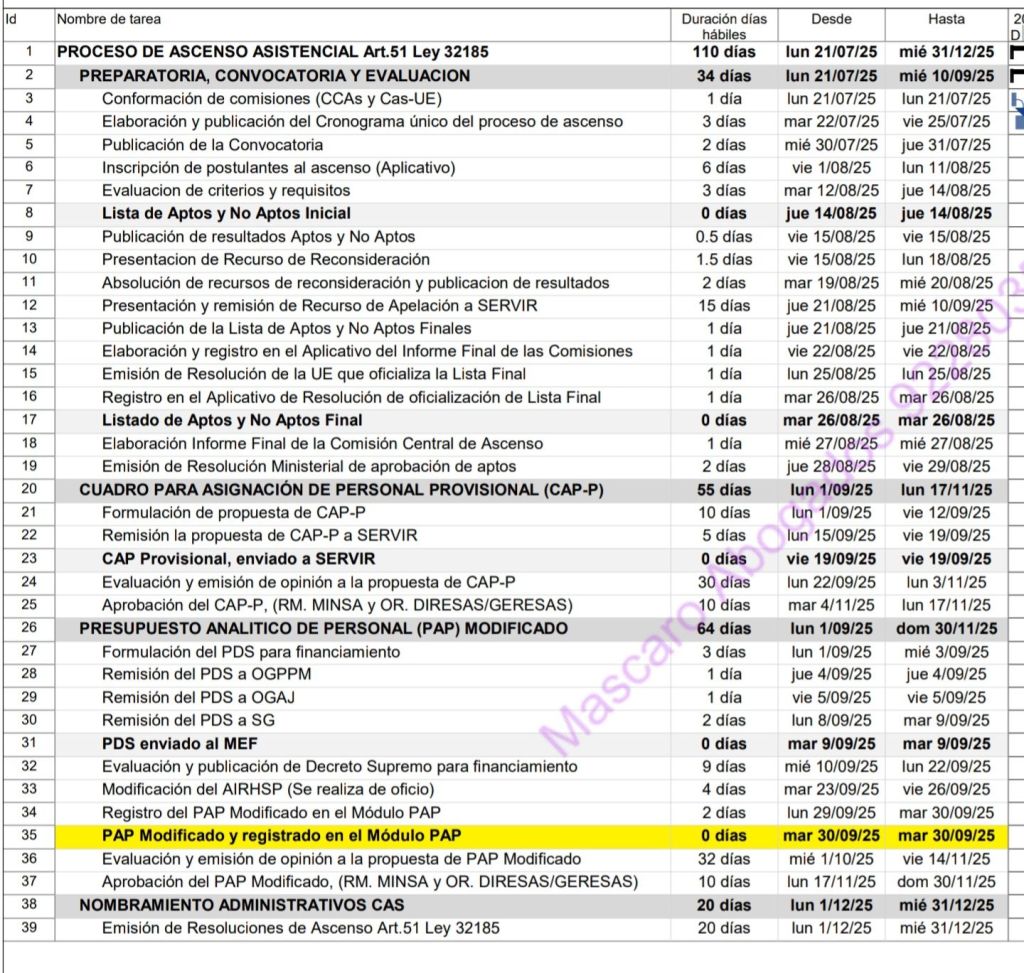 PUBLICAN CRONOGRAMA DE ASCENSO PARA PERSONAL ASISTENCIAL