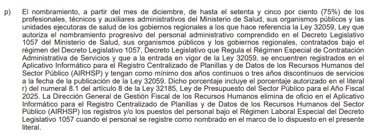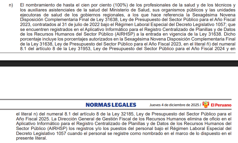 | Nombramiento CAS 1057 | Sí, autorizado (asistenciales y administrativos). | Solo para ex CAS COVID y reemplazos por cese. |