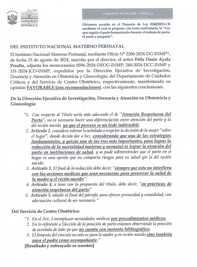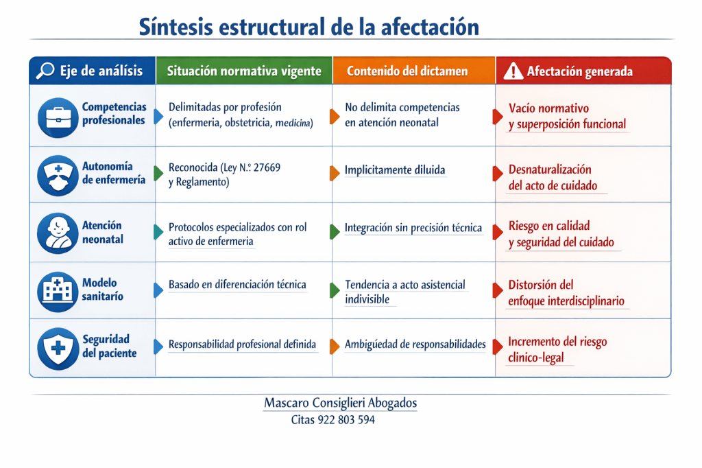 En este contexto, resulta cuestionable la posición asumida por el Instituto Nacional Materno Perinatal, cuya opinión institucional no advierte estas inconsistencias. Avalar una norma sin identificar sus efectos sobre la estructura competencial del sistema de salud supone una lectura parcial del problema y, en términos prácticos, contribuye a consolidar un enfoque técnicamente incorrecto ,mas aún si dentro de la opinión no se convoca ni recibe la opinión del profesional de enfermeria.