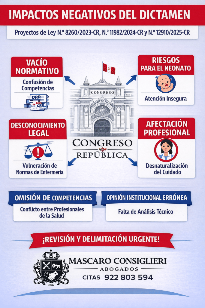 El debate en torno a la humanización del parto ha adquirido en los últimos años una relevancia incuestionable dentro de la política sanitaria. No obstante, el dictamen recaído en los Proyectos de Ley N.º 8260/2023-CR, 11982/2024-CR y 12910/2025-CR plantea un problema estructural que trasciende la intención normativa: la afectación directa al sistema de competencias profesionales en salud, particularmente en el ámbito de la enfermería.